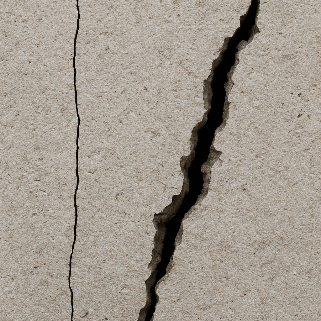 • Трещины — видны при визуальном осмотре. Отметьте длину и ширину, проверьте, есть ли перепад между краями (один край выше другого).